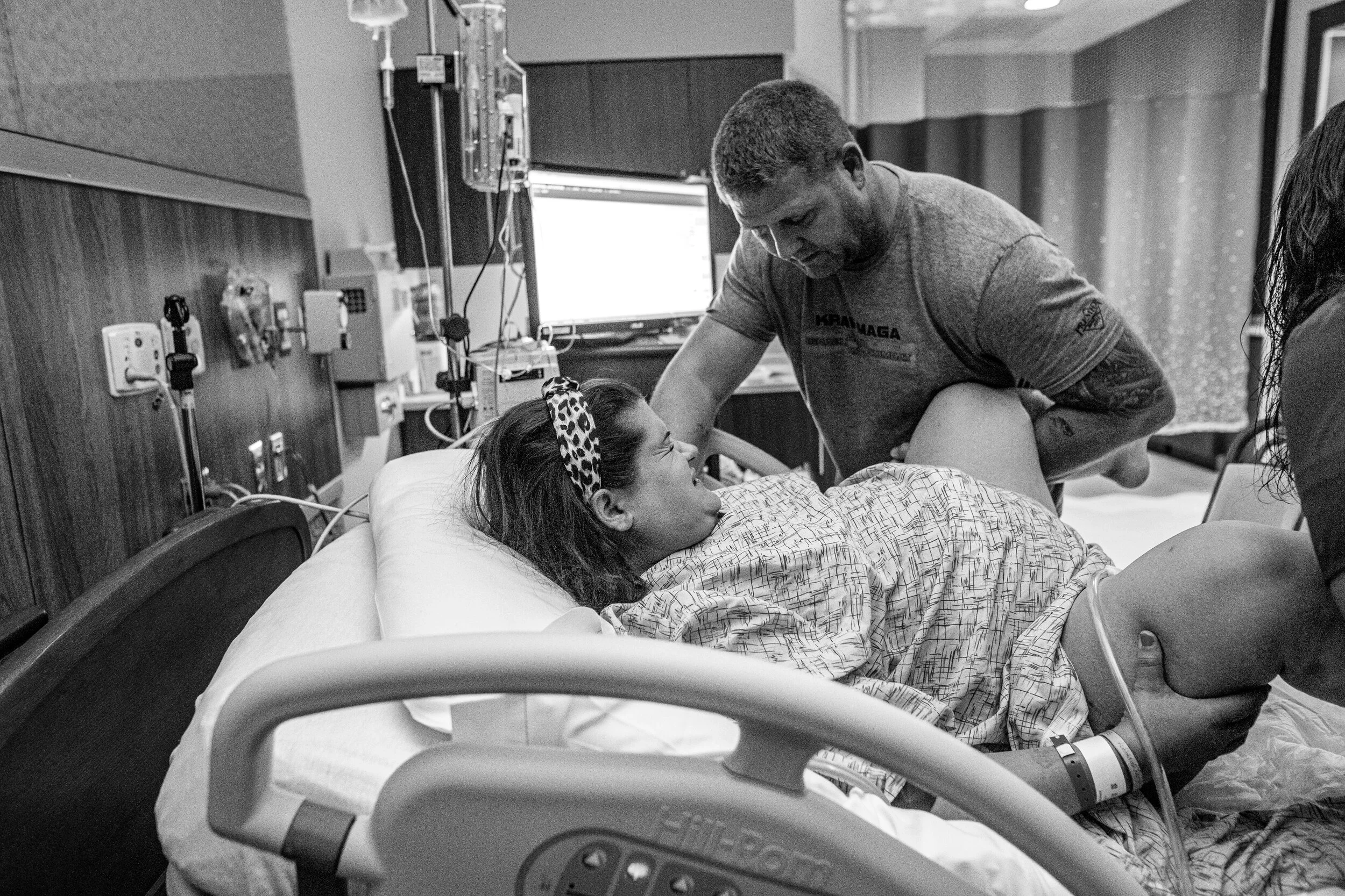 After pushing for a good amount of time, they realized baby was getting stuck and the doctors and nurses had to push and pull and help get the baby out.
